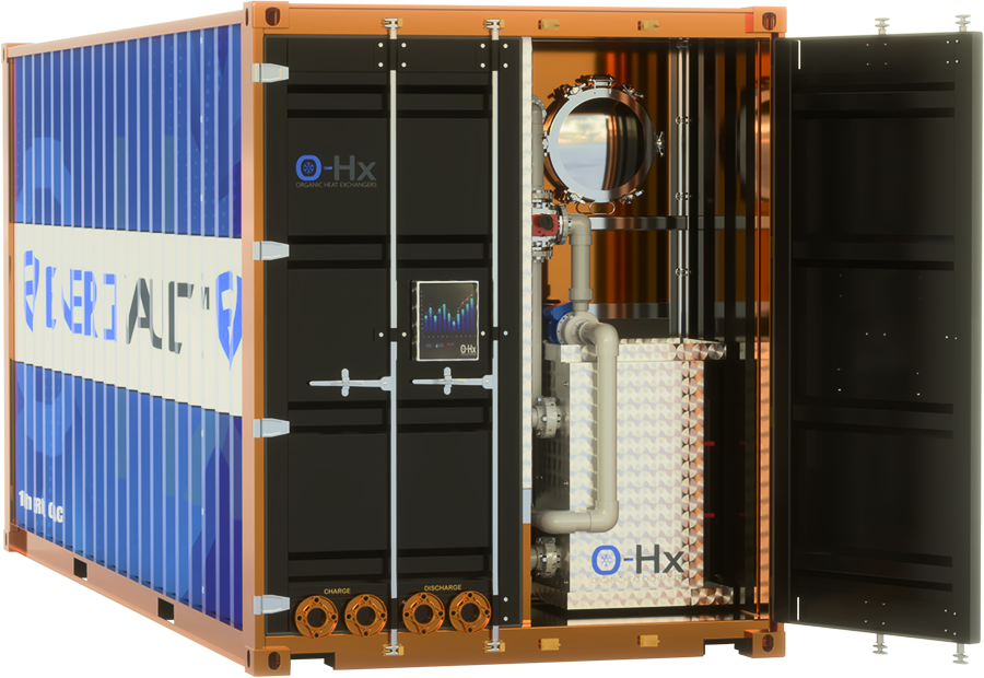 O-Hx has created and patented a distinctive Thermal Energy Technology. This phase change battery offers Cold Thermal Energy Storage (CTES) solutions. Initially aimed at making chilled supply chains (like food manufacturing, distribution, and retail) greener, it’s also suitable for industrial refrigeration, air-conditioning, and refrigerated transport.